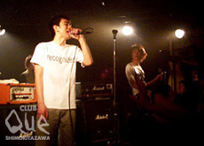 初期のCLUB Queの勢いというイメージの中にクッキリと焼き付いているのが、pre-school。当時20歳そこそこながら、バンドをやることへの執念みたいなものを、表面上のキャラクターとはまったく別の次元で、強烈に感じていた。そして時間は過ぎて、もはや押しも押されぬライヴ・バンドとなり、各媒体で話題を振り撒く彼らの、実に723日振りのQueでのライヴ。バンドのテンションももちろんだけど、店として、空間として否応なしにボルテージが上がっていく。当然レギュラー・バンド……的な空気でやってた頃とは雲泥の差のパフォーマンスを見せつけられるのだが、不思議と遠くへ行ったとか、スーパースター的な雰囲気はなく、逆によりパンキッシュにアグレッシヴに繰り広げられていくライヴが、激しく転がるガキども達との間にスポーティーな親密感を与えてくれて、それが古くも新しくもなく「今と生」を感じさせてくれる。熱気が水蒸気となって揺れるミラーボールから滴り落ち、その水滴を避けるために生放送用のTVカメラに巻かれたビニールが、激情の空間におかれたオブジェのようでもあった。当然空気中の酸素の量は、通常の半分くらいに思えるほど薄く、さらに役目を全うし切れないエアコンがまるで熱気を吐いている様に錯覚してしまうほど。Queの平均的なライヴからしたらグッと短い約1時間半のステージの中に凝縮された時間は、俗世間とは異質なものであるけど、実に現実的な時間だったし、苦しく危険な状態のはずなのに、心地よく開放されていく感じは、運良く約25%の確立でチケットを手に入れることのできた人たちだけの、変えようのない貴重な体験だったはず。ライヴの後の朝5時まで続いた打ち上げは僕らだけの特権だけどね……。"ローリング・タッチダウンツアー3" pre-school
