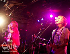 ミニ・アルバム『副隊長』のレコ発を記念して、ロリータ18号がCLUB Queにやって来ました。自分でも意外だったのですが、実は彼女達のライヴを観るのは初めて。さらにパンク・バンドをライヴで観るのも初めて。INUだってスターリンだって大好きだけど、全部CDだからね。開場を待つパンク・キッズに紛れ込みながらワクワクワクと登場を待つ。登場のSEが流れて一瞬「?」。「これは、ダ・パンプでは…」。そう、ダ・パンプの曲にあわせて登場したメンバーは、お茶目なダンスを披露しちゃってんです。そんなバンド初めて見たぞ(噂によると「タ・ハンフ」というギターのエナゾウ、ベースのキム☆リン、ドラムのアヤ坊で結成したダンス・ユニットらしい)。でも曲が始まるとそんな雰囲気が一転。めちゃくちゃカッコいい!やっぱりこれぞパンク・バンド。さすがはアメリカやヨーロッパで凄い数のライヴをこなしただけある。ヴォーカルのマサヨの独特の声にも圧倒されつつ、なんだかやたら長いMCにも放心しつつ、パンク・バンド初体験に興奮してしまった私。さらに度胆を抜いたのはムッシュかまやつの登場。ライヴの半ばから「カメラ隊を引き連れた人がいるなぁ、誰だろう?」と思っていたら、アンコールの「ジョニー・B・グッド」で舞台に乱入してきたのはムッシュだった! 会場は異常なほどの盛り上がりでモッシュに参加してなかった私までも熱気で汗まみれ。パンクもムッシュも一度に味わえてしまった今回のライブは凄い!のひと言。外国にばっかり行ってる印象のロリータだけど、イギリスでのレコーディング、頑張ってください!"GIVE IMPETUS TO THE 7HEATS ~ロリータ18号「副隊長」レコ発LIVE~" ロリータ18号