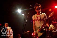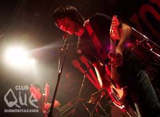 ここQueで行われるイベントは数あれど、“ビバヤング”ほど、 毎回「とりあえず、観ておいて損はさせませんぜ!」的なメンツと、「とにかく、楽しんで帰ってね!」的なお祭り雰囲気を持つイベントは、他にないだろう。栄えある21世紀最初を飾るビバヤングは、掛け値なしに素晴らしくかっこ良いギターバンドばかりが揃った。トップバッターは、popcatcher。真摯が故の地味で閉鎖的な佇まいに、歯痒さを感じずにはいられないが、その研ぎ澄まされた煌めくようなメロディセンスと、時折り胸に食い込むほどのエモーショナルなエネルギーを宿した音は、バンドとしての唯一無比なる存在感を確かに放っていて、胸に刺さって抜けそうもない。次いで、MO'SOME TONEBENDER。音を鳴らし始めた途端、重く生々しい彼らの音世界に飲み込まれるような感覚に襲われる。余分な肉と感情を削ぎ落とし、骨と魂からのみ発しているような胸に迫る音と、クールさと