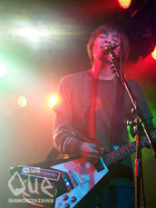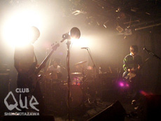 my way my loveが主催するこのイベント。入り口で、オモチャ入りのカプセルをくれるというオマケが、個人的にはかなり嬉しい。まずは、近々発売されるMIXアルバムからのSEで、ギターベイダーが登場。同性としては思わず羨望してしまう、捻くれたかっこ良いギターを鳴らす女の子ギターリストは、その声もまたとてもキュート。独特な跳ねるようなベースは、スリルを感じさせつつ、気分良くこちらを乗せ、ふんだんな遊び心を感じさせる、予測不能なメロディ展開に、最後の1曲まで、ワクワク、ドキドキさせられ通しだった。久しぶり観て、かっこ良さの増大ぶりに驚かされたのは、 PELICAN KING。音なのか、メロディなのか、メンバーの発する‘何か’なのか…正体はわからないけれど、ライブ中ずっと、肌と胸の奥をざわざわした。うねるような音圧に圧倒されながらも、それに気押されないずっしりとしたメロディの確かさを、強く感じた。続く、ALIEN NOIZY TOURISTは、息つく暇を与えずに、ガリガリ、ギリギリとした攻撃的な曲の連続。唖然とさせられるライブパフォーマンスは、途中、Tシャツを脱ぎ捨てるほどで、ラストの曲で、発狂とも思えるような最高潮に達した。主催者というより、一観客としてイベントを楽しんだという、my way my loveがラストを飾る。閉塞感の漂う雰囲気あり、 想像力を越えた音色あり、狂気を感じる暴走あり。とにかく、彼らのステージは、何度観ても、耳と胸に強烈な衝撃を与える。ナイーブなメロディを奏でていたかと思えば、暴発するようなギターとベースの爆音。クールな佇まいから一変、激しく暴れ回るキレ具合。病みつきになる快感をばらまく、ノイジーでクレジーなステージは、時間の経過を忘れさせたため、あっけなく終わってしまったように思えた。終わってからふと思えば、今日のバンドは全て、ノイジー・スリーピース・ギターバンドだったのだが、それぞれのベクトルの個性的かつ決定的な差異が、観てる側を厭きさせない、良いイベントだった。"CAPSULE No.4" my way my love/ギターベイダー/PELICAN KING/ALIEN NOIZY TOURIST