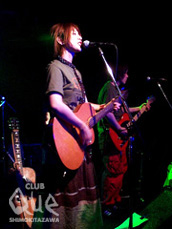 5月19日にリリースしたニュー・アルバム『Daylight』の中からの曲を中心に行われたこの日のライヴは、アルバム1曲目にしてタイトル・チューンでもある「daylight」で始まった。メンバーはgにex.SHADY DOLLSの高木克。bにex.DOG FIGHTの根本健一。dsに三浦智津子。両サイドの骨太な面々とセンター・ラインの女性ふたりの対比が絶妙なPOP感を醸し出していた。サポート・メンバーというよりはパーマネントなバンドのようだ。そしてguestで、nino trincaの奇才(笑)キーボーディスト・上田禎登場。ライヴは序盤、ニュー・アルバムからの楽曲がクールな中にも微かな熱を発散させながら軽快に続く。中盤、keyが入りエレアコをアコギに持ち替えた篠原と上田ふたりのセッションへ。彼女の低いトーンのヴォーカルとアコギと鍵盤の絡みは背筋がゾクッとする程絶品だった。終盤は全員によるフォーク、ブルース、カントリー、ロックンロール等、さまざまな“篠原りか”が僕の傍らに置かれていく。そして歌詞が頭に入って来る。彼女の世界観の端っこにちょっと触れた気になった。それは、他の誰でもない自分自身であるためにいろんなことを受け入れるぞっていう彼女の生き様のようなもんだ。「ああ、篠原さんは身も心もインディペンデントな場所にいるなぁ」と。アンコール・ラストはアコギ1本「生活のうた」で締め括る。21世紀のアーバン・カウガール! カッコイイッす!"RiKA SHiNOHARA Live Circuit 2001~Live in 「Daylight」~" 篠原りか [高木克(g/ex.SHADY DOLLS)/根本健一(b/ex.DOG FIGHT)/三浦智津子(dr)] guest>上田禎