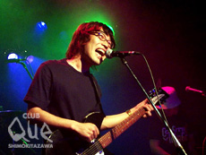 7月7日、七夕に行なわれた「草加印~其の六」。どうせなら「其の七」であって欲しかった.....とも思ったが、それ以上に「まだ6回しか行なわれていなかったのか。」と少し驚いた。記念すべき第1回目は確か2000年の3月、最近では「天体観測」が大ヒット中のバンドとの2マンだった。あれからようやく6回目、しかしその1回1回は非常に内容の濃いすばらしいイベントであったことは確か。毎回恒例の草加せんべいのプレゼントもうれしい。こういう所からもハックルベリーフィンの人間性が表れてるような気がしてくる。 今回のお相手は東京でもすでに十分な人気を得ている京都バンド、ママスタジヲ。このバンドも本当に「京都くさい」バンドだなぁと思った。とてつもなく豪快でやたら爽快で、MCからパフォーマンスから何かと目が離せないステージングに圧倒。客を引き付けるのが非常にうまい。ピコピコ音が苦手な人でもこのママスタジヲなら聴けるであろう、とにかく楽しい。1人1人物凄く個性が強いのに決してバラついてないところもさすがだなと思わせる。お馴染みカバー大会では「青春ボディーブロー」を。「え!?どーなっちゃうの???」と思わせるような♪ボディ~に会場大ウケ。2マンということでかなりたっぷりの演奏だったが一瞬たりとも飽きさせないママスタの力に今後の活動がまた楽しみにさせられる。そしてハックルベリーフィン。ワンマン後初ライブということもあって緊張してたそうだが、曲が始まるとまったくそういのを感じさせない演奏力はさすがとしか言い様がない。ハックルのライブはいつ見てもいい。こんなに安心して聴けるライブバンドも少ない。そしてこんなに幸せな気持ちにさせてくれるバンドもそうそういない。ハックルならではの魅力がこの草加印ではよく引き立ってる。お馴染みの曲「25」何回聴いてもかっこいい、そして色っぽい.....つい聴き入ってしまう。ハックル側のカバーは「ベイビーワッツ」。ボーカルギターの佐久間も言っていたがストレートなアレンジでママスタのとはまた違った色で素晴らしかった。本編も終わりアンコールには「MOUNTAIN」これが聴きたかった。胸がいっぱいで泣きそうだった。周りの女の子も幸せそうな顔してステージを見つめてる、それを見てまた更に胸がいっぱいになる。何とも壮大で、とにかく純粋で、とてもキラキラした七夕の夜が幕を閉じた。直球勝負のハックルベリーフィンに対し、巧みに変化球を操るママスタジヲの2マン、両バンドにとっても客側にとっても非常に刺激的なライブであった。ハックルベリーフィンはとどまる事を知らない。高い山にどんどん昇って行く姿をいつまでも見届けていたいなと思う。"ハックルベリーフィン presents 草加印 其の六" ハックルベリーフィン/ママスタジヲ