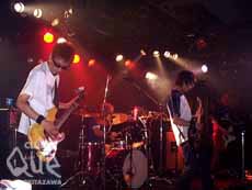 連日の猛暑でくたびれたカラダに染み渡る美しい旋律で始まったcruyff in the bedroom。琴線を震わすメロディと数えきれないエフェクターで歪んだノイズ・ギターは、耳にもカラダにもココロにも、ほんとうに気持ち良い。その轟音を浴びていると、限りない高揚感と染み付いた不快さが洗い流されるような爽快感を味わう。徐々に針が振り切れていくようなライブは、いつもより時間も曲数も多いはずなのに、あっという間に終わってしまった印象を受けた。そして、初めて観る、AUTO PILOT。彼らが現れる前に、ステージ後方に積まれた見慣れない器材がまず目を引いた。それらの器材のデジタルな響きとギターが鳴らす歪んだ扇情的な音と普遍的な声が絡み合い、爆音になって、こちらへ向かってくる。通常のギターバンドでは手を出せない音の多様な音の連続に、ギターバンドの新しいカタチを見せられた気分になったライブだった。いい加減大音量のライブには慣れっこになったと思っていた私の耳だが、この強力な2バンドのおかげで、ライブ後、久々の耳鳴りを体験することになてしまった対決だった・・・。"RETURN TO NATURAL CLUB Que夏の陣!" AUTO PILOT vs cruyff in the bedroom