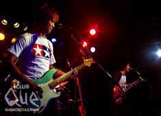 COILが主催するこのイベント。「自分が楽しめそうなライブになると思う」とメンバー自ら語るだけあって、とてもオイシイ組み合わせが実現した。一番手は、ゲストの上田ケンジ氏。シニカルなMCで場を笑わせつつも、曲が始まればその歌に会場全体が包みこまれる。たった4曲には、物足りなさを感じてしまったが、メロディの良さと強力なサポート陣の鳴らす素敵な音達は、その短い時間に関わらず、しっかり胸に残った。二番手はcellophane。ほんとうに久し振りに観た彼らのステージからは、変化を恐れず進むバンド特有の強さが伝わってきた。サポートミュージシャンのエレクトリックな音も、バンド内に新たな科学反応を起こしているようだ。インストでの複雑に絡み合うメロディとサウンドは斬新で、ラストの曲ではそれぞれの音同士がぶつかりあう火花が見えそうな激しさだった。そして、最後COIL。今日が彼らのライブ初体験の私は、聞きかじりの情報でなんとなくイメージを描いていたのだが馴染みやすくどこか愛嬌のある曲と、がっちりとしたシンプルかつロックな迫力のある音は、直に観てみると良い意味で裏切られた愉しい驚きがあった。メンバーの人柄のせいもあってか、気の置けない者同士のような打ち解けた雰囲気の中、アンコールまで大いに盛り上がった。"RETURN TO NATURAL CLUB Que夏の陣!~POWERLESSPOP vol.3~" COIL vs cellophane guest>上田ケンジ