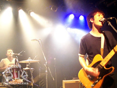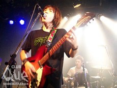 CLUB Queも、もう7周年を迎えたなんて月日の流れるのはほんとに早いですねえ~。思わず感慨深く昔を振り返ってしまいます。ともあれ、7周年記念イヴェント“THE 7 WONDERS OF Que”がいよいよ幕開け。そのトップを飾ったのは、ハックルベリーフィンとOO TELESA。安定感のあるバンド・サウンドで魅せてくれるハックルに、若さと無邪気さで挑むダブルオーという感じ。そのダブルオー、初の2バンで、こんなに長く演るのは初めてという。初々しさとそれゆえの勢いのよさが相まって、GS風味もハードさも、すべてミックスした弾けたステージを見せてくれる。新曲やバラードである「小春日和なら通り過ぎて」などを聴かせつつ、若さゆえの粗さ、その持ち味が十二分に発揮された、彼らにとって“初の”1時間というライヴ・アクトだった。代わってのハックルは、無理のないハイトーン・ヴォイスのヴォーカルに、それを支えるリズム隊、まさに三位一体が生み出す音の心地よさに、思わず体がリズムを刻んでしまう。サスペンス・タッチのフレーズで聴かせる曲、ポップ感のある「アクアラング」など、その演奏には余裕が感じられる。「CLUB Queはやっぱりいいね」とg&voの佐久間がMCで語りつつ、マイペースで奏でるサウンドや、3人のハーモニーに、彼らのロックに対する堅実さや誠実さが垣間見えるようだ。「MOUNTAIN」でギター音が鳴ったままステージを後にした彼ら、その残響の中で観客の手拍子が彼らを再び呼ぶ。アンコールは「夏のドライブ」。ジャズティックなフレーズがをさらりとこなせてしまうところもさすが。“VS1”は、個性の異なる2組のバンドが思う存分力を発揮して締め括られた。"THE 7 WONDERS OF Que~CLUB Que 7th Anniversary~" ハックルベリ-フィン vs OO TELESA