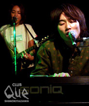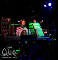 HARCOが主催するこのイベントは、今日が2回目。前回、とても感銘を受けた映像&アニメーションがなかったのは残念だったが、"偶然のような必然"的取り合わせの出演者はそれぞれ非常に個性的で、とても興味深い。以前活動していたエスレフノックとは見違えるような、柔らかな声と不思議な浮遊感が漂う音楽を披露した、ミッコことQuinka,with a Yawm。初めて観たあがた森魚氏のステージは、想像以上に童話的で、大らかで温かい世界に包みこまれた。茶目っ気たっぷりに音楽と遊んでいる姿は、この上なく自然体でありながら、年を重ねる素敵さと偉大な人柄を感じた。HARCO、BIKKE、あがた氏という異才の集ったBELZELKEEL。ぎこちなさは否めなかったがおかし味とそれぞれの才気が奇妙に融合していたので、独特の音楽世界を楽しめた。今日の出演者が一同にステ?ジに上がって、にぎやかにセッションする場面も。最後はもちろん、HARCO。彼の音楽に触れると、いつもその発想に感心してしまう。言葉の選別や音の着色など、ありふれているかのような自然さを纏っているのに、才能の豊かさを感じてしまうのだ。全くの新曲も聴かせてくれたり、ミッコがギターで参加したりと、自らの企画ならではのお楽しみもあったステージ終了後には、たっぷりとした内容と時間に楽しくもくたくたになったイベントだった。"THE 7 WONDERS OF Que~CLUB Que 7th Anniversary~" "Fast Sync.・" HARCO/あがた森魚/Quinka,with a Yawm/BELZELKEEL DJ>FUZITA BLENDER