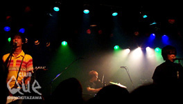 数年前から夢想し、実現すると知った時には狂喜した、この2バンドの対決。先攻は、cruyff in the bedroom。彼らのライブは、ダウナーな曲に浸り沈んでみても、アッパーな曲で暴れ狂っていても、与えてくれる本質的な気持ち良さには変わりがない。どんなタイプの曲であっても、彼らだけが響かせる美しいメロディと濃密な轟音の波は、身体に溜まった違和感を氷解させるような心地良さを感じさせてくれる。そして特に今日は、仲の良いピールアウトが相手ということもあってか、程よい闘争意欲と押さえ切れない嬉しさがよりライブを刺激的にしているようで、後半からのひたすら快楽へと昇りつめていくような感覚は、いつも以上に鮮烈だった。後攻は、PEALOUT。ロックバンドは数あれど、彼らくらい際立った個性を持つ音の実力者が集結しているスリーピースも稀ではないだろうか。声、ギター、ドラム、ベース、キーボード・・・ライブで彼らが鳴らす音達全てには、全身の血流の温度を上昇させ、激情の衝動に火を点ける火薬を含んでいるかのように、熱く激しい。その音楽に駆り立てられ、メンバーもオーディエンスも真っ向からロックしている姿は、気持ち良いほど雄々しく、アンコールまで白熱したライブだった。ライブでしか感じられない音の迫力を骨の髄まで楽しみながら、会場全体がロックバカ一色になっていた、好対決だったように思う。"THE 7 WONDERS OF Que~CLUB Que 7th Anniversary~" PEALOUT vs cruyff in the bedroom