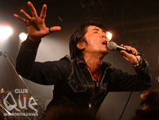 誰が決めたか知らないが、今日はMUSIC DAY(音楽の日)だそうだ。世間一般にどのくらい認知されているかわからないけど、ライヴを日常茶飯事にする人達にとっては音楽の祭日だけあって、年越しの次くらいに、行きたいライヴと行けるライヴの狭間で悩む日かも。大小関係なく各会場がめいっぱい強力なメンツを揃えてくるこの日、Queが選んだのは、水戸華之介&3-10chain vs 怒髪天! 想像するだけで、体温が上昇してしまいそうな強烈かつ熱い対決の実現に、迷わずQue!!と決めた人も多いのでは? 先攻は怒髪天。こんなにバカになれるバンドっていないよなぁ!と改めて実感。がっつりしたギター、ずっしりしたベース、どっしりしたドラム、そして増子アニキのキメまくりのステージ・パフォーマンス! 暑苦しいほど熱いステージだけど、時々哀愁も感じさせられたりして、ドキっとさせられるのも彼らならではのカッコ良さ。とにかく楽しーい!と絶叫したくなる、男気絶好頂、俺流最骨頂のライヴだった。セット・チェンジの合い間は、祭りに興を添えるため(?)今年の新年会にて、バカウケ&爆笑を誘ったサード・クラス袴田氏の占いトーク。彼を知らない人にそのおかしさを伝えるのは難しいけど、要領を得ないむず痒くなるような独特の間と口調で、独自に研究された星座占いを、画用紙を使って説明してくれる。同バンドのバイオリニストのBGM付きで。時間の制約のためか会場はいまいち盛り上がらなかったが、一部ウケる人にはとてもウケていたので、またの機会を楽しみにしたい。後攻は新体制になってからの初めてのライヴという水戸華之介&3-10chain。こちらもメチャクチャ熱いがそれに加え、驚くほど激しいパフォーマンスとコール&レスポンス! キャリアと実力を兼ね備えたメンバーの音はタフでグレイト!! 圧倒というか、観ているだけパワーをもらえつつも、ちとしんどくなるくらいの(笑)エネルギッシュなライヴだった。しかしそれでもまだ飽き足らない会場の熱烈なアンコールに応えて、2度目のアンコールを敢行! 終わった後の会場は、熱気とお客さんの満足感が充満して、むんむんだった。"MUSIC DAY 2002 in Shimokitazawa ~天真爛漫のハナバタケ~" 怒髪天/水戸華之介&3-10chain