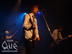 外も暑けりゃ中も暑い!トップバッターはスピンドルス。60's、70'sを彷彿とさせるソウルフルな音の洪水にあっという間にフロアの温度が上昇する。熱い音の中にもどこか心の琴線に触れる切なさがあって食い入るようにステージを見つめてしまう。赤い照明がこの上なく似合う3人は魔法のように30分間を一瞬に変えて走り去っていった。スピンドルスによる十分すぎるほどのウォーミングアップを終えてGRiPの登場。お揃いの白シャツに黒ネクタイ姿の3人が登場するとあちこちから歓声が上がり、瑞々しい輝きと疾走感に溢れたメロディがさらに会場のボルテージを上げる。MCではvo.TAKE-KICK宅の日めくりカレンダーが披露されるなどお茶目な面も覗かせつつ。「FLASH BACK」では日常をテンポよく叙情的に切り取り、「MY WAY」では観客を再びスピードの彼方に運んでいった。首にタオルを巻いた戦闘態勢完了の観客が前方に集まり出すとトリのSepaが登場。1曲目「ROCK'N ROLL TONIGHT」からパワー全開、たちまちモッシュが起こるフロア。Vo村上の「明日のことなんて考えないでやっちゃいたい」という言葉通り、少しの出し惜しみもないポップ&パンクな音がフロア全体を包み込んでいく。曲数が進んでいくにつれてSepaに負けじとばかりヒートアップする会場。すごいことになってます。中盤では少しメロウな楽曲も披露されるが後半戦は再び音の洪水+体力勝負!とにかく熱く、暑い夜が更けていったのだった……。"RETURN TO NATURAL 2002 夏の陣" Sepa vs GRiP opening guest>スピンドルス