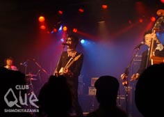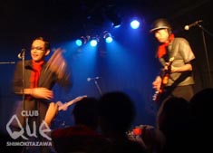 ゴーグルエースの「東京エレキッド」発売記念にふさわしい、最高に楽しいメンツが集まった。まずはTHE SHE。畳みかけるような音の応酬とドラムのスティックが何本も折れる熱演にカラダが勝手に動き出し休む暇も与えてくれない。あっという間に熱い30分が過ぎてしまい、彼らが残していった余韻に浸っていると次から次へと女の子たちが前の方に押し寄せてくる。前回観たときはこんなに人気じゃなかったのに!驚いていると来た来た来たぁっ!「バーレスクエンジンのテーマ」に乗ってvoコハラ氏が颯爽と登場。相変わらずキメキメでしかもそれが様になっていて思わず溜息。MCは相変わらず軽妙爆笑ものだが、70'sスパイ映画風の最高にクールな演奏にエモーショナルなブルースハープを華麗に絡ませてしっかりと決める。そして今夜初披露の新曲のタイトルは「銀座ポマード」!さすが!ラスト「GO!GO!バーレスク」ではコハラ氏がフロアに降りて美女にブルースハープを聴かせるパフォーマンスも披露。これまた余韻が醒めやらないうちにゴーグルエース登場。レコ発だけあって熱狂的なほどの盛り上がり。エリ嬢のアナウンスも麗しく、3人の決め決めポーズもかっこよく、Tシャツの宣伝ではモデルとしてK.O.G.A社長まで登場!完璧にショーアップされたロックンロールに思わず叫び出しそうになる。中盤しっとりと聴かせるバラードを挟みながらも最後は「踊れ~!」とばかりにアップテンポのナンバーが続く。メンバーがステージから去っても熱気は冷めず拍手は止まず、なんとダブルアンコール。エンターテインメントに心から酔いしれた夜だった。"RETURN TO NATURAL 2002 夏の陣" "東京エレキッド発売記念" ゴーグルエース vs バーレスクエンジン opening guest>THE SHE