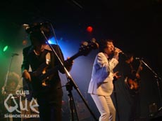 待ってました!この対決。スクービーの全県ツアーの東北方面ではデキシーも加えての夢の共演だったのですが、東京で観るのは恐らくこれが初めて(だったかな?)。いや、どちらのバンドもよく観ているもんですから、よく分らなくなっちゃうんですよね。で、この日はオープニング・ゲストなしの完全ガチンコ対決。会場は当然、開演前からギュウギュウの鮨詰め状態で、ほぼ酸欠寸前!前に行こうにも行けず、泣く泣くカウンター近くで観ることになった。最初は全県制覇を見事成し遂げ、さらにタフガイへと成長した“あんたのファンキーな味方”(by.シュウ・コヤマ)スクービードゥー。最近のポップ感あふれるソウルフルなナンバーを中心に、スイートでファンキー、ソウルフルでアグレッシブなステージングを展開。ボーカル、シュウ・コヤマのMCも冴え渡り、観客も狂喜乱舞の大騒ぎ!たまらず自分もおおはしゃぎ!こういうライブは自分が楽しまなくてどうするっ!シュウ・コヤマがいつも言っている「俺たちのソウルとあんたのソウル」が合致した素晴らしいステージだった。そして御大、THE PRIVATESが登場。スピード感たっぷりのロックンロール・ナンバーを堂々と見せつける。キャリアがあるだけにそつがないようでいて、しかしながらやんちゃな部分もあり、客も拳を振り上げジャンプしまくりの踊りまくり!もう体力の限界か、と思ったところでライブは終了。でもこの後、深夜の部で朝までこの響宴は続いたのでした。"RETURN TO NATURAL 2002 夏の陣" THE PRIVATES vs スクービードゥー