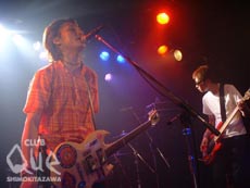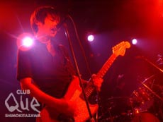 昔に比べて今の音楽の広がりたるや目を見張るものがある。洋楽・邦楽というくくりももはや意味をなさなくなり、まさにやっている人の国籍が違うだけという様相を呈してきつつある現状だが、そのくくりの意味のなさを実感するにふさわしい3組が揃った。開演前から気になっていた、ステージ奥で燦然と輝くリンゴマーク。そのpower bookを駆使した、デジタルとアナログの限りない広がりをインストというフィールドの中で見せてくれたのはMERSEESIDE DERBY。マニピュレーターがテルミンを操るような動作でフロアに電子音を響き渡らせば、ツインドラムが強烈なリズムを絡ませて重低音を響かせる。その圧倒的な音圧にくらくらしているとcruyff in the bedroomの登場。オルゴールのような優しいイントロの「nico」から彼らの騒々しくも美しい世界が幕を開けた。溢れるノイズに叙情的な世界。どうしてこんなにも優しく響き渡るんだろう。ラストの「plastique bag」では空の高みに持って行かれそうな透明感に鳥肌すら立ちそうになった。トリをつとめたdipは貫禄すら感じさせる存在感と安定感に満ちており、次々とぶつけられる濃度の高い楽曲に観客もすっかり飲み込まれている。ガツンという衝撃よりもカラダの内側からじわじわと熱くなっていくような感覚に陥ってしまった。3組に共通していたのは音楽に対するストイックな姿勢。そのストイックさが放つ熱に酔わされた夜だった。"RETURN TO NATURAL 2002 夏の陣" cruyff in the bedroom vs dip opening guest>MARSEESIDE DERBY
