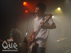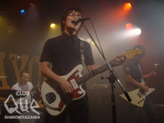 夏のビバヤング恒例5日公演の2日目。入口でもらった"美場一筋"ライター、会場に吊された提灯には"祭 美場!"の文字、壁にはお馴染みの落書きスペース。こういうところから、ビバヤングならではの雰囲気が感じられて、わくわくする。また、レギュラーDJのフミヤマウチ氏の胸ときめく選曲もイヴェントをより楽しませてくれる。クラヤマ氏が九州で見つけてきたというSPARTA LOCALSが一番手。無骨で荒いけれど、引き寄せられるような熱があり、ヴォーカルとギターが胸に鈍く刺さる。得体のしれない期待感を残すバンドだった。2番手は、かねてからビバヤングに出たくてようやく実現したというGash。楽曲の魅力を核に据えながら、それぞれが鳴らす音同志の親密さがより増したことで、ひとつの塊となって、時に優しく包みこみ、時に激しく揺さぶる。バンド全体が大きなうねりになったような印象を受けた。3番手のストレイテナーは、クラヤマ氏の熱望がようやく叶っての初出演とのこと。ギターとドラムだけという編成にも関わらず圧倒的な存在感を放つ演奏は何度観ても感動を覚える。ストレートでエモーショナルな楽曲は強く胸を打った。最後は、farmstay。あらゆる音楽の要素をキャッチーなメロディに絡ませ、予測不能なアレンジで驀進するステージは、いつもよりは多少苦戦しながらも、お客さんと一緒になって、ひたすら愉しさを追い求める、熱いものだった。ビバヤング初登場のバンドが大半の今日だったが、ビバヤングだけが持つ良い雰囲気に刺激されてか、全バンドが好いライヴを見せてくれ、とても満腹な夜だった。"VIVA YOUNG! 夏のビバヤング! 5DAYS・7SHOWS~NEW EDGE COMES~" farmstay/ストレイテナー/SPARTA LOCALS/Gash DJ>フミヤマウチ
