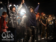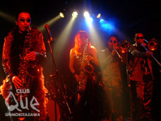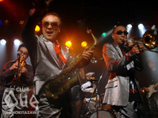 戦後最大級の台風が上陸すると言われていた10月1日。久々のTHE THRILLワンマンということで、心待ちにしていたファンが悪天候もなんのそのとばかりに会場を埋め尽くす。インスト・ホーン・バンドでは、大御所の彼ら。存在感のあるメンバーがステージいっぱいに並び、それだけでも圧倒される。ライブではお馴染みのアッパーなナンバーと、メンバーそれぞれの見せどころを交え、親近感のあるゆる~いMCでお客さんを沸かす。すると途中でDOMINO 88の女の子ホーン隊とボーカルのキヨシくんがゲストで登場!ホーン3人娘は大御所をバックに緊張しながらも、初々しい演奏を聴かせてくれた。それからまたTHE THRILLワールド全開!このまま最後まで行くのかと思いきや、今度はホフディランのワタナベイビーがゲストで登場。“ホフディラン、活動休止なんでTHE THRILLに入れて下さい”とお願いすると“ウチは会員制だから入会金もらうよ”と言われ、とりあえず1000円渡していたのが笑えた。ベイビーの歌を交えたナンバーが終わると、またもや圧倒的な熱いナンバーを次々と繰り出し本編は終了。でもこれで終わる人達ではない!アンコールではゲストも交え、ステージにはざっと数えて21人はいるというすごい状況の中、ワタナベイビーがフランク・シナトラの名曲「マイ・ウェイ」に乗せて、THE THRILLのメンバーを全員紹介してライブは無事終了。しかし“キャリアのある大人達が本気で楽しんでロックをやっている姿ってマジかっこいい!”そんなことを改めて実感した夜だった。"QUENCHLESS HIGH LIGHT!-HIGH[8]EIGHT!~THE THRILL presents 8・9・10~" THE THRILL メンバー>横山英規(b)、GAKU(g)、ゲンショウ(dr)、岡部洋一(per)、澄田啓(key)、平田直樹(tp)、RIEZ!(tp)、GYO(tp)、小泉邦男(tb)、SASUKE(tb)、ロベルト小山(a.sax)、Yukarie(t.sax)、石川"テノール"宏明(t.sax)、SMILEY(b.sax)、関島岳郎(tu) guest>キヨシ/OTO/KAORI/MAI(DOMINO'88)/ワタナベイビー