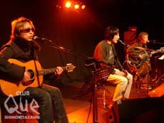 多くの人で開演前から身動きをするのも儘ならないぐらいだったけれど、不思議と穏やかな空気が流れていた。開演時間ピッタリにステージへ現れたのは歌う37歳、TOMOVSKY。いい意味で肩の力が抜けている感じ、そしてMDと一緒に演奏をしているほのぼのとした姿に何とも心が擽られてしまった。何度かMCで「次の2人がライヴをやっていると記憶が無くなっちゃうんだろうな。忘れちゃうんだろ!」と笑いながら言っていたけれど、ステージを去った後の“トモコール”を聴いたらそんな事は無いのが瞭然。続いて「色んな37歳がいます」とTOMOVSKYと同い年の上田ケンジが登場。ウィスキーの水割りを飲みながらリラックスをした雰囲気。聴く者の耳に優しくリズムを植え付けていく。ルースターズの曲『ガールフレンド』のカバーも。そしてYO-KING。『きれいな水』の時、久し振りに感動の温かい涙が流れ、言葉ってこんなに力を持っているんだ…と改めて感じた。今回のライヴで彼はアコースティックライブで盛り上がるコツを掴んだと。それは最後にギターを掻き鳴らす事!ラストは3人でセッション。「まさか…って曲やるよ」「これを聴いたら帰らざるおえない」とひっぱられ、演奏されたのが『蛍の光』。歌の最後では「さらば2003年!」「良いお年を!」という言葉も飛び交い、一瞬年末?と(笑)。ダブルアンコールでは『かえるの歌』までも…止まないアンコールの声に急遽演奏をしてくれたのだろう。歌った後、YO-KINGが「音楽っていいね」と一言。きっとあの場に居た人は同じ事を思っていたのでは?とっておきな時間が素敵な音楽と共に皆の心へ刻まれたはず。個人的には大人になり、歳を重ねていくのは悪くないとも思ったな。"The Ideal Acoustic Holiday" 上田ケンジ/TOMOVSKY/YO-KING