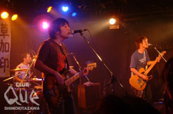 2000年から始まったハックルベリーフィンの名物イベント、「草加印」ももう10回目!記念すべきこの日の対戦相手はカーネーション。開演前からフロアはぎっしりで、期待の高さをうかがわせる雰囲気だ。カーネーションの演奏はとにかく貫禄たっぷり、知らぬ間にステージに吸い寄せられてしまう。お互いの曲を1曲カバーするという企画が売りのこのイベント、直枝氏曰く出演が決まってから聞かされたとのこと。「緊張する!」「コップとか飛んできたらどうする?」「寛大な心で聴いてください」とめずらしく弱気な発言連発だったが、披露された「アクロバット」はもう完全にカーネーションの音だった。カーネーションの新曲と言われても信じてしまえるほど、骨太でロックンロールに満ちあふれたアレンジに圧倒される。続いて登場のハックルベリーフィンはカーネーションの演奏に影響されたのか、気合い十分といった感じ。音が鳴り始めた瞬間、空気中に笑顔の素が散らばっていく様が見えるようだった。たちまち心がうきうきして、いつだってハックルの術中にハマってしまう。ハックル側からのカバーは、佐久間が大好きだという「Garden City Life」。こちらも原曲の余韻を残しながらも、ハックル独自の楽しさと切なさが混じり合って、聴いたそばから優しい気分になれるアレンジになっていた。ステージ上であたたかい音を鳴らす3人組はいつもにこにこと笑顔で、私たちを知らないうちに優しい世界へ連れて行ってくれる魔法使いだ。草加せんべいとともにほんわかとした気分もお持ち帰りできる、なんともステキなイベントだった。これからも末永く続けていってほしい。"草加印 其の十" ハックルベリーフィン/カーネーション