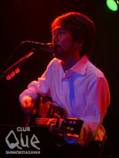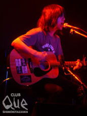 メロディがありリズムがありグルーヴがある。そしてその中で凛としているのが“歌”というものの存在であるとおいらは思う。歌が凛としていればしているほど、私たちはわかりやすくその音楽の虜となる。そういう意味で、歌というのはひじょうに強烈で重要で、直接的な手段だと思う。前日に行なわれた大盛況のワンマンから一転、PEALOUTのボーカリスト、コンドウトモヒロと、コンドウトモヒロが共演したいボーカリストとして名前を挙げたというTHE PRIVATESの延原達治、小山卓治という3アーティストの共演は、そういった“歌”の重要さを再確認させてくれた。珍しくイスが並べられてゆったりとしたCLUB Queの店内は、アーティストによって温度は変わるものの、なぜだか妙に居心地よく感じられた。彼らひとりひとりのオリジナリティと呼ぶべきものが次々と吐き出されていき、観客はその空気に身を傾け居心地が良さそうにステージを見つめていた。今この瞬間を楽しみ抜き、会場をアコースティックらしからぬハッピーな空間に変えた延原達治、歌以前に“声”のもつパワーを感じさせてくれた小山卓治の強烈な歌、そして淡々と綴られていくコンドウトモヒロの平常。異なる空気が少しずつ混ざり合って溶け合ってまろやかになっていったのが、この日のライブだった。歌は歌だけになると、バンドとは違うオリジナリティがある。そして混ざり合った空気は新しい空気を作り、歌は妙に現実味を帯びて私たちの心に届いた。コンドウトモヒロがなぜワンマン直後にひとりでこのステージに立ったのか、おぼろげではあるがわかる気がした。きっとそういうことなのだ。"OUT THE BLUE ~NOW HERE MEN~" コンドウトモヒロ(PEALOUT)/小山卓治/延原達治(THE PRIVATES)