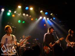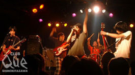 年々アツさを増す‘夏の陣’初日を飾るのは、名実共に熟成してきたバンドと新しく根を張り始めたバンドのコラボレーションとでも言うべきイヴェント。opening actを務めるのは、Que初登場のthe ARROWS。胸を詰まらせるような甘酸っぱいボーカルと、瑞々しくキャッチーなメロディが先ず印象的。次いで、ギターの快音と心地よい浮遊感を感じさせるアレンジにぐっと惹かれ、「Queでまた観てみたい」という思いに駆られた。LUNKHEADは、ビシビシとくるベース、鮮やかなギター、ドラムの安定感、そして、飾り気がなく等身大でありながらも人心を捉えるボーカルが、バランス良く力強く響き合っている。ずっしりとした手応えのある直向きな歌詞に、思わず目頭が熱くなる瞬間もあり、心のヒダを震わせ、胸に何かを残すエネルギーを感じたライブだった。ある種の風格さえ漂わせ始めたGashは、気持ち良いくらいメンバーの楽しさが伝わってきたモチベーションの高いステージだった。心の奥底にまで浸食してくるようなボーカル、アグレッシブかつメロウなギター、身悶えしたくなるようなベースライン、ナイーブでありながらも鳥肌が立つリズムを打ち鳴らすドラム…ふとした瞬間に、バンドの音という塊から突き抜けて耳に刺さってくるそんな個々人の活き活きとしたプレイも堪らなかった。「熱い」だけで語り終わらせない、質実剛健なライブを今後も期待したい。"RETURN TO NATURAL 2003 CLUB Que 夏ノ陣" "~trance-EVE~" Gash/LUNKHEAD opening act>the ARROWS