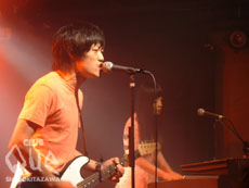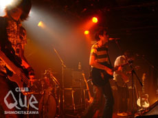 “vs”という言葉がまさにぴったりだった28日。レポート用のメモ帳も取り出せないほど混み合った会場内に、それぞれのスタイルでロックンロールを体現した2バンドが登場した。DUSKとTHE JERRY LEE PHANTOM、それぞれがお互いをリスペクトし、触発されるように素晴らしいライヴを繰り広げた。表面の感情ではなく心の底辺を吐き出すように鳴らされるDUSKの音楽世界は、静寂と激昂の両極を見せていく。マイペースなMCとは裏腹に、音楽の中の彼らは冷ややかなぐらい沸々とした感情をぶつけてくる。しかしその空気は張り詰めながらもどこか自然体だと思える不思議なものだった。対して瞬く間に会場中が揺れ動いたのはTHE JERRY LEE PHANTOMのライヴだ。音楽は聴き手が楽しもうと思えばいくらでも楽しめるもの。しかし彼らが叩き出す極上のダンス・ロック・ミュージックは、そんな聴き手の態度とは無関係に胸を熱くさせ体を揺らした。強い衝撃とにやけるほどの楽しさ。観客のモッシュの波が、こんなに当たり前で楽しそうに見えたのは久しぶりだった。音楽が、空気よりも空気らしく呼吸に入り込んでくる……。大袈裟ではなく、音楽ってなんてすげえんだ! と思う瞬間は、どんな感動よりも自らを突き動かす衝動を与えてくれる。そしてこの日空気よりも濃く会場に充満していたのは、そんな音楽に突き動かされたあらゆる人々の衝動のパワーだ。"RETURN TO NATURAL 2003 CLUB Que 夏ノ陣" "2003 VS SERIES" THE JERRY LEE PHANTOM vs DUSK