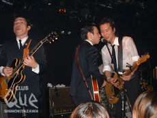この2バンドの組み合わせを見たとき、私は当日の会場の温度を想像してクラクラした。ジャンルこそ違えど、オーバーヒート必至の熱い魂を持ったバンド同士の対決が実現。まずはリーゼントにタイトなスーツのいなせな伊達男4人組、THE NEATBEATSが登場。爆音で鳴らされるロックンロールにフロアは大揺れ、ステージを所狭しと動き回って客を煽るなど魅せ方も完璧だ。骨太だけど武骨じゃない、熱いけれどスマートなロカビリー・ロックで次々と聴衆を打ちのめしてくれる。「チャック・ベリーが来日するね!」と心底嬉しそうに、彼らのルーツである60年代ロックを軽快にカバー。「59 BAR」「黒いジャンパー」などおなじみナンバーもガッツリかましてタフネスをアピールした。そして熱も冷めやらぬうちにフジロック帰りのフラワーカンパニーズが登場。のっけからテンション高い高い! ステージを縦横無尽に動き回って声の限りに叫ぶ圭介と、彼をしっかり支える個性も強いが演奏も力強い3人。ライヴを見る度に歌を届けたいという彼らの変わらぬ情熱にふれて胸が熱くなる。フラカンは決してスタイリッシュでもないしおしゃれでもない。情けないくらい赤裸々な自分をありのままさらしてくる。あんまりストイックなやり方でそれがこちらに向かってくるから、思わず目をそらせなくなる。彼らを観るとどうしてこんなに元気が出るんだろうと涙ぐみそうになる程心を揺さぶられてしまった。本編が終わっても興奮冷めやらずダブルアンコール、しかも最後は「恋をしましょう」!! 盛り上がらない理由なんてひとつもない! 踊って笑って叫んで心が思い切り解放された夜だった。"RETURN TO NATURAL 2003 CLUB Que 夏ノ陣" "2003 VS SERIES" フラワーカンパニーズ vs THE NEATBEATS