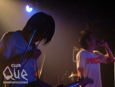 埋め尽くす人、熱気。年内で活動を休止するpre-schoolの、CLUB Queワンマン2デイズの初日となる今日、この日はのっけから頑なな熱気が感じられるライヴだった。うまく説明できないが、楽しむというよりは音楽に支配され、本能を揺さぶられて、それをありのままに踊るといった感じなのだ。その熱気にはロック特有のとげが見え隠れし、その凄まじさが会場中を揺らしていたように思う。一見淡々と見えたライヴは徐々に加速を増し、観客をどんどん自らのペースに巻き込んでいった。ステージ上から撒かれる大量のペットボトルの水は、熱気の中にいたからこそ気持ち良かった。踊るフロア、加速を増すライヴ・ステージ、それはあっというまの1時間だった。とにかく、早かった。そして、余韻が残った。……誰もいなくなったステージを見つめながら、満員のフロアは鳴り止まないアンコールの拍手を送っていた。メンバーはなかなか出てこなかった。ほどなくして客電はつけられ、ちらほらと終演ムードが漂ってきた。しかしアンコールは鳴り止まなかった。その矢先、おもむろにメンバーがステージ上に現れたのだ! 会場は再び熱気に包まれた。そして彼らは、客電はついたまま、ステージ上の照明は白だけで、たたみかけるように演奏して去っていったのだ。文字どおりのなんの飾り気もない、シンプルなステージ。余韻は違った感慨になった。“なんてかっこいいバンドなんだろう”素直にそう思わせてくれた。"CLUB Que 9th Anniversary ~COLORS OF LIFE~" pre-school