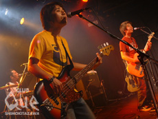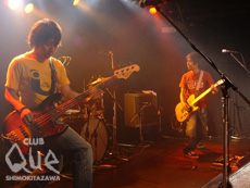 来たよ、ハックルベリーフィンが新境地を開拓して、CLUB Queに帰ってきた!毎度お馴染みのSEから、すでに観客席は笑顔で満杯になった。これもハックルマジックの一つ。先日発売になったミニアルバム「STAND」のタイトル曲からツアー初日を印象づけるスタート。vo.&g.の佐久間氏の感情の玉手箱は早くも一つずつ開封され、私達の心に色とりどりの花を咲かせてくれる。アルバム製作の一年を振り返りながら「久々で嬉しすぎ」と語るメンバーは、演奏する喜びに溢れているようだった。続く「はなむけの歌」には、旧友に会えたかのような懐古の念すら覚える。次々と引き出しの異なる楽曲が披露され、枠に収まりきらない彼等の可能性を改めて痛感させられた。もちろん、ココCLUB Queに風を起こした「グライダー」のような王道ももちろん健在。彼等の唄を聞いているとその唄に導かれ力が抜けていく感じと同時に、背を押してくれる頑張りソングが同居し私達に和める場所を作ってくれるのだ。メンバーのテンションは後半に向けますます加速し、観客も負けじと拳をあげて応戦。まさに「ボディブロー」の打ち合いだ(笑)!ハコの熱気を上昇させたまま、アンコールの「月影」を終えるが依然拍手は鳴りやまず。お客さんの彼等に対する気持ちと、まだハックルマジックにかかっていたい気持ちが痛い程伝わってくる。この続きは、まだまだ続くツアーにとっておこう。久々に会えた彼等のサウンドに、心踊る一日だった。彼等のライヴは私達にとっておきの笑顔をくれる魔法だった。"CLUB Que 9th Anniversary ~COLORS OF LIFE~" "STAND! Tour!" ハックルベリーフィン