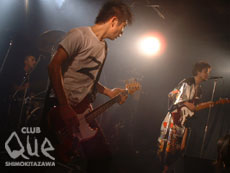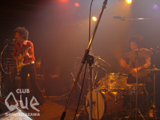 デキシード・ザ・エモンズのドラマー、ハッチーブラックボウモアの投げキス(悩殺)により、闘いののろしは上がった。“CLUB Que 9th Anniversary ~COLORS OF LIFE~”の一環として開催された、“宙ブラリ闘魂十番勝負~5番~”は、デキシード・ザ・エモンズと宙ブラリの真っ向勝負となった。新メンバー、プーヤンが加入しよりパワーアップしたデキシード・ザ・エモンズは、とにかく人を惹き付ける圧巻のロックンロールを披露する。顔で弾くギターも、何かが違うスティックを投げるタイミングも、迫力の歌声も、すべてが観客を容易にロックに埋もれさせた。オリジナリティとはこういったことなのではないかと彼らが去ったあとのステージを見ていて思った。対する宙ブラリは、これまた半端ない気合いの入りようであった。ステージに彼らが登場した瞬間に、その気合いはすぐさま伝わってくる。これでもかと言わんばかりの渾身の一撃が放たれ、その気迫が、心をビリビリと痺れさせた。日本人然とした熱さと男らしさ、それをフルに活かした気迫のステージがとても“粋に”見えてならなかった。この日お互いは、お互いのオリジナリティを貫いていいライヴをやっただけ。それなのに、闘いと感じられてならなかったのは(もちろんイヴェント・タイトルのせいもあるだろうが)、そうやって突出した何かを惜しげもなく見せつけられたからだろう。"CLUB Que 9th Anniversary ~COLORS OF LIFE~" "闘魂十番勝負 5番" 宙ブラリ/デキシード・ザ・エモンズ