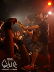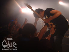 CLUB Que 9周年イヴェントも終盤。Queではおなじみの2バンド、POLYSICS vs PENPALS。対決にふさわしい、熱い一夜だった。場内は楽しみたいッ!気分満載。本日の主催者A.T.FIELD 青木氏前説の後、登場したのは、POLYSICS。音色が変わる、声色が変わる、ヴォーカルが変わる、つかまえたと思ったら、別のものに変わってる。すごくポップなんだけど、どこか懐かしい。(なつかしいと感じるのはover 30だけ?)ステージ上のメンバー間の温度差も見物。汗ひとつかかずにキーボードを弾くカヨちゃんはホントに人間なのかしら? と思わず疑うほど。その横で汗だくのvo.&g. 林くんはギター弾きながら客席に倒れこむ。それをさらに反則?技、ボンジョヴィのカバーでヒートアップさせた、PENPALS。(しかも2曲も!)楽しかったから、ありあり!みんなで一緒に楽しむ、というこの空気。年令も関係無しにそこにいる全ての人達がつられてニコニコしてしまうほど、バンドに負けないくらい、お客さんもはじけまくり。中盤、これから始まるツアーの核になるであろう、新曲の後、ミディアムな曲でためてためて、後は最後まで一気に。アンコールのメタル、ツインリード、サイコーだったよ!"CLUB Que 9th Anniversary ~COLORS OF LIFE~" PENPALS/POLYSICS