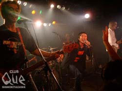 2003年も残すところ数時間となり、第2部はSepaから勢い良くスタート! 4人それぞれ楽しそうな笑顔を浮かべ1曲1曲を大切に力強く熱いステージを繰り広げた。続いてGashの登場! ギターが響き渡り、優しい空気が会場を包み込む。溢れ出す感情をさらけ出し、魂を込めて歌い上げる石塚氏。弦を2本いっぺんに切ってしまう程の気合いを魅せる。真っ直ぐ心に染み入るメロディと切り裂くようなサウンドが融合し、圧倒的な世界観を放っていた。3番手はTHE JERRY LEE PHANTOM。更に会場のヴォルテージを上げ、一気にロックンロールムードでオーディエンスを煽る。弾けるビートと軽快なパフォーマンスで会場をぐいぐいと引き込み、物凄い熱気と歓声を巻き起こした。次に登場したのはフラワーカンパニーズ。「今日はお祭りだ!」と圭介氏が連呼してライヴが幕を開け、会場の温度は上昇し、満員の会場が一気に揺れ動いた。汗を漲らせながらの渾身のステージと心を温かくさせる和やかなMCで会場中を魅了した。そしてTHE PRIVATESが登場!「みんなよく集まりました!」と延原氏の言葉でライヴがスタート! 身動きがままならない満員の会場から歓声が湧き上がり、一瞬たりとも目が離せない衝撃的で圧倒的なステージに歌って踊って盛り上がるオーディエンス。最後まで忘れられない空間を創り出していた。そしてトリを飾るのは怒髪天!vo.増子氏の軽快なMCから「夕暮れ男道」「欠けたパーツの唄」「北風に吠えろ!」と続け、胸に響く熱い歌声とパフォーマンスでギチギチの会場は大揺れ、そして大合唱! 「宿六小唄」が終わり、カウントダウンまであと数分…MCでも会場中を笑顔にさせてくれる怒髪天。2003年→2004年への橋渡しに「サスパズレ」を。全員が両手を上げ左右に振り、心から楽しんでいる姿とメンバーの笑顔がとても眩しい。そして一時中断、Queよりお酒が振舞われカウントダウン! 輝かしい幕開けに増子氏の「新年おめでとう!」と上原子氏のギターで演奏の続きが始まり新年を迎えた。その場所に居れたこと、同じ空間、時間を共有できたこと…心の底から嬉しく思った。"UE'S COUNT DOWN 2004 ~Do You Eat Rice Cake?~" 怒髪天/THE JERRY LEE PHANTOM/THE PRIVATES/フラワーカンパニーズ/Gash/Sepa