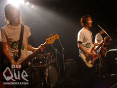 CLUB Queの扉を開くと、いつになくスペイシーな空間が広がっていた。その空気を作っていたのは本日のDJ、Pre-schoolのSerino Takayuki。流れてくる心地よいポップロック達に身を委ねていると、The Circulatorsの叫び声と共にライヴが始まった。線の細いメンバーの姿に繊細な音を想像していたが、荒削りながらも骨太なサウンドに度胆を抜かれる。淡々をしながらも独特の世界を繰り広げた。続いて黒服のロッカーな出立ちで現れたのはBITE THE LUNG。ツインギターがこれでもかと唸りグルーブ感に満ちていた。中には歌謡曲調なもの有りユーモアに飛んだMCだったりと型にはまらない魅力に満ちていた。そしてサウンドもパフォーマンスも濃いテルスターが登場。ちょっぴり掠れた唄声で一生懸命唄いあげている姿が逆に空回りぎみで何とも愛らしい。彼等の溢れんばかりのエネルギーは笑顔を振りまく天気雨のようだった。トリはもちろんサイコテンションな主催者farmstay。客席を煽っては派手に飛ばし上げる彼等に乗り遅れないように必死に目と耳を傾ける。彼等の武器であるスピード感とひねくれロックにのまれつつも、一方で「リザウンド」などvoのアサウチの伸びやかな唄声が私達の胸に突き刺さる。熱を感じる新曲も披露され、最初は乗り遅れないように必死だった聴衆も何時の間にか彼等に飲み込まれてしまった。拝啓farmstay様、またハイセンスなイヴェントを頼むよ!"サイコテンションハイセンス vol.2" farmstay/テルスター/BITE THE LUNG/THE CIRCULATORS DJ>Serino Takayuki