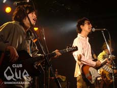 “サザンハリケーン 2ndミニアルバム「天才ノスゝメ」レコ発企画第2弾! ~天才駅伝復路~”イヴェント名ここまででよいのでしょうか? トップは髭。ステージ上に現れた時点で、会場が髭の世界に浸っていた。懐かしさを感じさせるロック。ツインドラムの上に、ベース、ギター。その上にボーカルと安定したピラミッドが出来ていて、その中で揺れるメロディーが心地よい。会場も酔いしれていた。だらだら感、まったり感がたまらなく良い。鍵盤の入る曲もあり、うたもので歌詞がしっかりと伝わった。彼らのロックが骨にしみました。久しぶりに見たが、薔薇は(Voのマイクスタンドに)まだあるのですね…。2番目はフジファブリック。いつも聴いていて思うのだが、ずっと前から聴いていたような感じにさせられてしまう。それぞれメンバーの個性がぶつかることなくストーレートにくるので、直にがっちりとしたサウンドがぶつかってきて気持ちがよい。「普段MCとかあまりしないんですが、今日はバンド同士で何かと繋がりがあるから…、しゃべります。」と、Vo.志村氏が話し出してから、お客さんもすごい盛り上がってきて、後半戦はその勢いに乗って熱くなっていた。最後はサザンハリケーン。不思議な雰囲気で始まりましたが、最後までその勢いは衰えることなく、継続していました…。とても楽しそうに演奏するメンバーを見ていると、見ている側もにこにこしてライヴを見てしまっていた。ステージと客席との間にいいキャッチボールが出来ていた気がする。Vo梅沢氏の独特の歌いまわし、透き通る声が耳に残った。Voの梅沢氏が最近携帯を初めて買ったらしく、着信音を作ったとお披露目したのですが(曲名:ささやいてマイダーリン)とても素敵な曲でした。今日1番心に染みた曲でした!? 全体を通して懐かしさを感じさせるイヴェントでした。"2ndミニアルバム「天才ノスゝメ」レコ発記念 第2弾!! ~天才駅伝復路~" サザンハリケーン/フジファブリック/髭