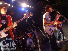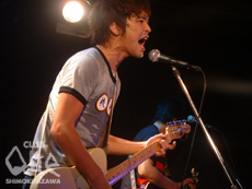 ザ・カスタネッツがワンマンをやるのは、なんと「2年ぶりくらい」(小宮山氏MCより)。この日のワンマンは、イヴェントの時とはまた違った、ザ・カスタネッツの本質がすごく見えたライヴだった。私は彼らが奏でる音楽を勝手に、"熟成された大人のポップ"と名付けているのだが、その色が全21曲の中に十分すぎるくらい溢れていた。『忘れないからね』『クローバー』と続いたスタートは、牧野氏がステージに出てきたときに言った「まったりやっていくんで」の言葉通り。たしかにカスタネッツの曲は柔らかくてほっとできる雰囲気なものが多いが、牧野氏の歌と目に宿る光には、ただ「まったり」では終わらない力強さがある。その強さは『あどけない話』のような、気持ち良く力の抜けた曲でも変わることがないし、『夏なんです』『気分屋さん』で子供のような笑顔を見せている時も光を保ち続けている。少年と大人が同居する人、牧野元。その魅力に会場中の人が釘づけになっていた。ピアニカ、ハープ、ギターと持ち替えながら自由に、気ままに、バリエーション豊かに動き回った前半から、ギターに絞った後半へ。ライヴが加速していくのを表すように、メンバーのTシャツがどんどん汗に染まっていく。最後から2or3曲目あたりで、ギターの弦が切れたのだが、勢いを途切れさすまいと、そのままラストの『青と白の日々』まで突っ走っていった。アンコールが終わった後も誰も立ち去ろうとしない会場に現れて、忘れていた告知と力強い「ありがとう」という言葉を残してくれた牧野氏。その目はライヴ中と同じ光を放ったままだった。夏の終わりに、暑かったこの夏の集大成みたいなライヴを見た。ザ・カスタネッツ