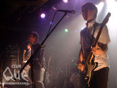 アルバム"albino"を引っさげてのツアー最終日。メンバーがステージに現れるとすぐに弾けるような拍手が沸き起った。ライトがつく前の暗やみの中で、Vo.江口が笑顔になったのがわかる。出てきただけでこんなにあったかい拍手をもらえるバンドって他にいるんだろうか。それは彼らの出す音が誠実なものだから、迎える側もそういう気持ちでいられるのだと思う。自分で「スロースターターなんだよね」といっていたように、前半はゆっくりライヴが進んでいく感じ。その分、ステファブのいろいろな表情が見える。弾けてると思ったら、静かになったり、直球勝負かと思えばひねくれてたり。そうやって繰り出される音はポップな中に重厚感があって、「おっ、カッコいいじゃん」と思わず見入ってしまう。フロアは8割方女の子が占めていたけれど、その中に太い声が混じっていたように、これからは男のファンも増えていくのでは? ウォーミングアップがすっかり済んだ後半戦はエンジン全開。目の前の道をまっすぐに突っ走っていくような曲が休みなく続く。フロアの拍手や歓声も大きくなっていくし、それを糧にしてステファブもどんどん大きくなっていく。ライヴ中にバンドがニョキニョキ成長していく貴重な瞬間を見た気がした。『首都高ドライヴ』での体の中を突き抜けていくような唄と音は、何もかも吹っ切って前に進んでいくステファブの今とこれからを表しているような、ものすごい疾走感だった。本当にいいライヴだった。見終わった後、心からそういえる場に居られたことに感謝する。