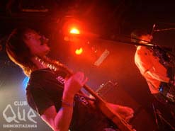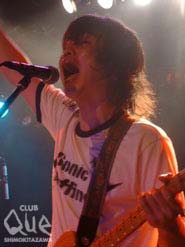 山登り未経験をカミングアウトしたキャプテンストライダム、「2004年最後の山登りを始めたいと思います」の第一声により幕を開けたQue’s Count Down 2004 第一部。外には雪が降り積もり、ほぼ全てのバンドが「お足元の悪い中…」と結婚式さながらのMCをかます悪天候だったにも関わらず、ここCLUB Queには物凄い数のお客さんが集結。ダブルオー・テレサの軽快かつ疾走感あるグルーヴと、ボーカル植木の破天荒なパフォーマンスに早くも巻き込まれていくオーディエンス。引っ掻き回されたフロアを、透明感ある声で潤してくれたnoodles。次々に沸きあがる黄色い声援が人気の高さを物語っていたSepa。ルースターズ「やりたいだけ」のカヴァーが最高にイカしていたGRiP。こんなに体温を感じる唄を歌える奴らには滅多にお目にかかれないと、純粋に感動させられてしまったセカイイチ。最後に演奏された「冒険」から、今後の活動に対する決意や覚悟を強く感じたハックルベリーフィン。そしてついに真打ち、the pillows登場。歓声と拳が次々にあがり、これまでのライヴが前哨戦だったかのような勢いで、見る見ると一体化していくステージとオーディエンス。彼らのライヴを目にする度、これ程ファンと理想的な関係が築いているバンドが他にいるだろうかと思ってしまう。the pillowsはファンと共に成長し、これからも歩んでいくバンドであることを再確認した。最後に、出演バンドの皆様、お足元の悪い中CLUB Queに集まっていただき、誠にありがとうございました。ちょっと言ってみたかっただけ。"Que's Count Down 2005 ~PRIMARY DRIVER VIEW~" the pillows/ハックルベリーフィン/GRiP/Sepa/ダブルオー・テレサ/noodles/キャプテンストライダム/セカイイチ