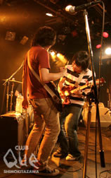復活を謳ったワンマン。傍目から見るとそれほど活動が滞っていたようには感じなかった。何からの復活なのか?演奏が始まった瞬間。ダブルオー・テレサがついこのあいだまでの彼らと違うのが客席に伝わってきた。バンドのグルーヴがこれまでの研ぎ澄まされ、突き詰めた感じから一転、優しく広がりのあるものになっていた。そしてvo植木の表情から狂気が消えていた。ライヴが終わってみると、MCで彼らがオーディエンスに約束した通り、客席はしあわせな表情で溢れかえり、僕の気分もしあわせになった。疾走感。焦燥。狂気。刹那。そういったものよりもむしろ、優しさ、広がりといったものがロックンロールの本質だったり楽しさなのだと気付かせてくれるライヴだった。きっと彼らはどこかでそれを見失ってそして取り戻した、という意味での復活だったのだと思う。目の前にあったバンドの危機を払いのけて、ダブルオー・テレサはきちっと復活した。そしてこれから彼らのロックンロールはどんどん広がっていくだろう。"GUDEN GUDEN GUDEN" ダブルオー・テレサ