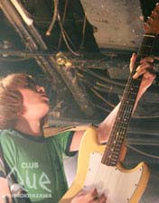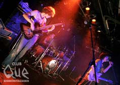 初めてQueでGreat Adventureを見たのは2年ほど前だった。その時は、フロアは1/3くらいしかうまっていなかった。同じ会場での初ワンマン。会場の人口密度は2年前と比べ物にならなくなっていた。月日は着実に流れている。その中で人間は進化したり退化したりしているのだけれど、Great Adventureは確実に前者の方だろう。おそろいの変てこなメットにサングラスというおかしな姿で現れた3人組。打ち込みにドラム、ベース、ギターがのって歌詞は英語と、なにやら不思議な空気を醸し出している。前回観たときは「パフォーマンスも荒いけど、演奏も荒~い!」という印象だった。今でも荒さは残ってはいるが、ライヴの完成度は見違えるほど高くなっている。曲が進んでいくにつれ、メンバーの動きも大きくなるし、客もどんどんトランス状態になっていくのを見れば一目瞭然だ。演奏が荒くても、歌詞が理解できなくても引っ張られるものってあるのだ。こう書くとカッコよさげなのだが…。だが、しかし…。テルミンやらトランペットという飛び道具が登場したり、100%日本人なのに、MCというか、きれぎれに発する単語は何故か妖しげな英語だったりする。やはり摩訶不思議な部分が大きいバンドなのだ。ワンマンなのに、ライヴ開始から1時間程度で本編は終了。終わるの早っ!アンコールもさくっとやって、ベースTARUMIの謎の逆立ちパフォーマンスで初ワンマンは幕を閉じた。短かったけれど、観客は大喜びのライヴだった。次に会うときはどんな進化を遂げているのか? ライヴの時間は延びているのか? Great Adventure、この先どう化けるのか、先が読めなさすぎて余計に楽しみになる。"THE INDEPENDENCE DAY of GREAT ADVENTURE -ファースト・ワンマン・ライブ-" GREAT ADVENTURE