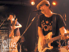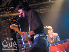 第5戦はTheピーズとunderstatements。お互い”夏フェス”出演直前のライヴとなったが当然手抜きはいっさいナシ! understatementsのイシイリョウスケさんがMCで「新入社員と部長って感じなので」と言っていたけれど、なんの、なんの。どっちもひけを取らない踊って弾ける夏ノ陣らしい対決となった。いきなり自慢の手品を披露しながらDr.ヨネちゃんを先頭に現れたのはunderstatements。対バンが誰であれいつも通りの地に足のついた、でもついつい踊りたくなる演奏を繰り広げる。軽快に鳴るピアノと、新入社員らしからぬ(!?)リョウスケさんの余裕ある歌で、会場をしっかり自分たちのペースにハメていた。新曲やカヴァーを挟んだ後、ミラーボールが回り始めて”SunflowerDisco”が流れるとunderstatements流ディスコタイムのスタートだ!「DISCO!」といわれたら「DISCO!!」で応えるレスポンスタイムに、すっかり恒例のマジックショウなど、エンターテイメント性たっぷりのステージに大満足。さて、お次はTheピーズ。始まる前からどっと熱気が迫ってきて、エアコンが急に効かなくなる。ひげ面で登場のVo.ハルは部長の貫録十分!? こちらもいつも通りのグダグダのMCと男くさい演奏のギャップでお客さんを大喜びさせる。気が付けばフロアの中ほどは完全無法地帯となっていた。レコーディング中という新曲もお馴染の曲も全部がThe ピーズだった。いつでもどこでも自分たちの世界を存分に表現できるっていうのは凄いことだな、と今日の対決で実感したのだった。"RETURN TO NATURAL CLUB Que 夏ノ陣 2005 ~VERSUS SERIES~" The ピーズ vs understatements