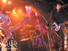 今夜は12月8日とCOILという世代を超えた2組の熱い戦いとなった。まず先攻は、12月8日。期待感と緊張感が高まる中、鋭いギターの音色が鳴り響いた。4人の絶妙な音のバランスが胸に迫り来るものを産み、歌声が叫び声かのように心に刺さる。このバンドが今持っている勢いに思わず圧倒された。MCではVo.キハラ氏が予備校生時代にCOILの音楽と出会った話を披露。「イメージの歌」から始まり「グッド・バイ」まで、新曲2曲を含むステージは これからの12月8日の可能性を感じさせる強い力を見せてくれた。後半、何よりも楽しそうに演奏する姿が印象的であった。そしてCOIL。かなり久しぶりのライブということもあり、会場はもう待ちきれないといった熱気で溢れていた。照明が落ちると同時に歓声があがりCOILの2人が登場。「ミサイル・カウンシル」でスタートした。自然と耳に入ってくるポップさの中に、ユーモアと職人的アレンジが効いたCOILサウンドは健在。少し長めのMCにも、2人の和やかな掛け合いに客席からは笑顔がこぼれる。2人の会話のこの心地よいゆるさも、COILのライブに欠かす事のできない要素なのだろう。アンコール2曲目では急きょ予定には無かった「天才ヴァガボンド」を披露。12月8日キハラ氏が思い出を語ったCOILのデビュー曲である。こんな嬉しいプレゼントも、今夜この2組がここCLUB Queで出会ったからこそ。客電が点いても鳴り止まない拍手が、この夜の奇跡を証明していた。"RETURN TO NATURAL CLUB Que 夏ノ陣 2005 ~VERSUS SERIES~" COIL vs 12月8日