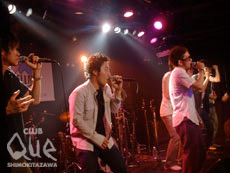 7月最終日でもあり、フジロック最終日でもあった7/31。CLUB Que夏の陣を締めくくるイベント“new soul collection”が開催。開演前にDJナオキ、MCガックン、SINGERりんりんのミニライブなんかもあって、いい具合に暖まった会場にまず登場したのはKUSU KUSU、MUITO BONITO解散後、ソロとして活動を続けている川上次郎。彼の性格を投影したような明るくポジティブな楽曲と、演奏時間より長かったのでは?と思ってしまうほどよく喋っていたMCで、オーディエンスも終始和やかムード。ゲストのMCUと「ACT ON MY STYLE」を歌った後、明日誕生日のMCUのためにみんなでハッピーバースデイを歌い、更にはステージ上でプレゼントを渡すという、サービス精神旺盛な川上らしいにくい演出もあり。続いて登場したスメルマン寿は元チン☆パラのメンバーを母体に結成された6人組アカペラグループ。下北沢での初ライブにしてトリという大役に臆することなく、圧倒的なステージを展開。ボイスパーカッション、ボイスベースの力強くも安定感のあるビートに、コーラス隊の美しいハーモニーが色を添え、熱のこもったヴォーカルでオーディエンスをぐんぐん引っ張っていく。何がすごいってファンの一体感がすごい。一緒に跳ねるし歌うし手は叩くし、スメルマン寿のメンバーといっても過言ではないくらいファンがいい仕事してて、そりゃあもう見事なもんだった。モーニング娘。やジャニーズのファンも顔負けでしょう。ファーストミニアルバムの表題曲「小さな鳥」で本編を締めくくり、アンコールでは川上次郎と「STAND BY ME」をセッション。世代やジャンルは違えど、素晴らしいエンターテイナーという点ではなんの違いもない彼等のショーの完成度の高さには、ただただ頭が下がるばかりなのであった。敬礼。"new soul collection" 川上次郎/スメルマン寿 guest>MCU(KICK THE CAN CREW)/MOMO MC