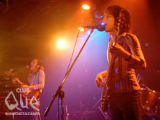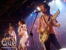 シュリンプエッグチリソースのホームパーティーはまさに「ホーム」だった。幼稚園のバザーのような飾り付け。ここはQueなのか、と見まがうほどのかわいらしい雰囲気。この日のステージは独特なノリで客席をガンガン唄わせ踊らせるシナトラで幕を開ける。夏の祭りを熱く演出。続いてOHIO101は、緊迫感に溢れた世界を作り上げ、心のロマンチックな部分を鷲掴みにしていく。祭りから一転、夜の砂漠を思い浮かべる。3番手、ハンサム兄弟は演奏力の高さと言葉の熱で心を掻き乱す。voハンヂのオーラは安心感を与えてくれる。まるで大木のような人だ。男気。各ステージの合間には、この日の隠し味、ゲ~マ~ズが「ドラクエ」「ツインビー」などのゲーム音楽をアコギ2本で再現。懐かしさのあまり歓声をあげるフロア。ラストはホームパーティーのホスト、シュリンプが登場。僕は初見。若い。かわいらしい。それまでベテラン音楽猛者のステージが続いたのでビックリした。大丈夫だろうか?なんて心配も杞憂。大きな花が咲いた。Voのタエコが「ここに立つのが夢だった」とか「今日はみんなを楽しませてあげる。」なんてストレートな言葉をフロアに放ち、そのキラキラした佇まいと歌声に撃たれる。演奏は素晴らしく、恐るべき17歳、Bのエビちゃんは海老のようにピョンピョン跳ねながら、リズムを操り、波を作る。終演後、シュリンプの仕掛けたホームパーティーの温かさにクラクラした。真夏の夜の夢はとても眩しかった。"シュリンプエッグチリソースのホームパーティー ~初めての××…真夏の夜の夢~" シュリンプエッグチリソース/シナトラ/ハンサム兄弟/OHIO101/ゲ~マ~ズ