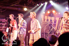 下北の常夏の風物詩「VIVA YOUNG!」。主催は24/7の倉山直樹。そのエネルギーは留まるところを知らずに加速し続けて、ロックを浸透させる潤滑剤になっている。上辺だけ捉えると何でこんな豪華なメンツがと言われるかも知れないけど、それはビジネスではない長く深い繋がりがあるから。つまり今回は初期ビバヤング!を髣髴させるメンツということです。早速スクービードゥーが登場して煽る。黄色い声が炸裂する中、知的で洗練されたロックが跳ねまくる。かまボイラーは70'Sのハードサイケな部分を匂わせながらも、バンド名から察するように気さくで茶目っ気もあるロックを展開。今後の大金星。そして怒髪天の登場。意味深い繋がりを書き出せば一冊の本が出来るほどの面白い話もあるけど、その圧巻のパフォーマンスには過去の事なんかに浸っている暇はない。最も今を体現しているバンドとして、アレンジ、楽曲、やんちゃ度すべてを絶妙にバランスして君臨しているという感じ。そして1夜置いても会場は熱を帯びたまま、LONESOME DOVE WOODROWSの登場。8ビートとブギーを織り交ぜるR&Rならこのバンドにかなうのはいないのでは。不良度の高いリズムとエッジの効いた声から滲み出る音は永遠のロックの証だった。続くJERRY LEE PHANTOMはこの後すぐに3DAYSを控えた身ながら、倉山さんの誘いならやってやるぜと言う男意気で参加。だけど手抜き一切なしの本物は刺激満載。他に類をみない音は不動の世界感を築いている。この日のトリはあのThe Wells。バンドブーム全盛を駆け抜けた、倉山にとっても一種憧れのバンド。当然その名曲たちに涙するシチュエーションも。全体的にギミックのないロック然としていて男粋を感じる1日だった。最終日はグルーブを感じる日。管楽器があるだけでも雰囲気はがらりと変わる。POMERANIANSの最も旬な音楽の後に真打24/7が登場。以前に見た時より格段にバンドとしてグレードアップしている。抜群のグルーヴはスカとかレゲエというジャンルに興味がない人でもつい惹きつけられていく良質な物、そこに倉山のとてつもなく個性的なVoが加わり、それまでに無い音楽を提供してくれる。とにかく元気が出る3DAYSは存在感と刺激の渦を巻き起こしていた。"真夏のVIVA YOUNG! 3DAYS 05" <26日> 怒髪天/スクービードゥー/かまボイラー <27日> LINK/LONESOME DOVE WOODROWS/The Wells/JERRY LEE PHANTOM <28日> 24/7/ONE TRACK MIND/POMERANIANS