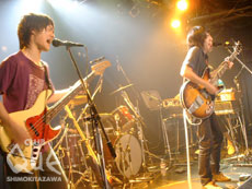 Queのお誕生日月間、3日目を飾るのは、いつもセンス溢れるイベントを行うninohira。14回目の今回も、ナイスな組み合わせで、お互いにどんな刺激見せ合ってくれるか、ワクワクだ。トップはGS大好きなザ・カードボードボックス。といっても、コテコテなGSではなく、彼らのオリジナリティと融合してクールな音となり、今までにありそうでなかった新ジャンル。しかし残念ながら、この日でkey.柳沢氏が脱退となった。その為、“柳沢祭”と言わんばかりのKey.中心に固めたセットリストと、彼に捧げられる他のメンバーの気迫に、胸が詰まる。『さよならメロディ』をはじめ、一つ一つの音をかみ締めるように、いとおしそうに紡ぎ出される音の欠片達。緊迫したライブに、体が吸い込まれるようだった。このライブが終ってしまう事が寂しくて仕方ないと思うけれど、また新にメンバー3人で歩いていって欲しい。この世界観、今後も注目すべきでしょう。続くは大阪代表Bacon。関西人の良いトコ取りの様に底抜けに明るい彼らは、見ているこっちが息切れしてないか心配になるくらい元気なステージング。Vo.&G.のコーディが「上に飛び跳ねてみませんか!?」なんて煽りを入れた『kids are allright』では、客席でも上に向かってジャンプの嵐だ。「楽しい」事が先行イメージのBaconだが、MCで「不屈の精神があったから、メンバーチェンジしても5年もやってこれた」なんてまじめな話も聞かせてくれた。どんなに逆境も乗り越えてきたから、見ている人を心底楽しませられるパワフルなライブが出来るようになったんだろうな。この一体感を大切に突き進め、Bacon!ラストはハックルベリーフィン。めっきり“トリ”をつとめる事が板についてる彼らは、お茶漬けのようにサラリと入り込んで、心を洗浄してくれるのです。SEの後にジャムりながらのスタートが、彼らの力量の深さを感じこれから始まるライブへの期待感大増量。選挙などの時事ネタMCでなごませつつも、がっつり決めるのがハックル。久々に聞いた『夕暮れの風』は、この季節にぴったりで切ないメロディがぎゅっと染込む。そして、歌で世界が変わればいいと思ってしまうあまっちょろい私には、『SING』にやたら共感してしまう。大それた“世界平和”まで行かなくても、きっとそれにつながるものが歌に、『SING』にあると信じたくなる名曲。この3人の世界に、愛を感じない人はきっといないもの。今日の3バンドに共通して言えるのは、きちんとグルーヴがあって、そこに「歌」があるという事。個人的に音楽って、伝えたい「歌」がありきだと思っているから、今夜の3組は私にとってお祭だったよ。素敵なイベントをありがとう!チームninohira★愛してます★"CLUB Que 11th Anniversary FES. ELEVEN ROUNDS of GROUNDS" "ninohira☆014" ザ・カードボードボックス/Bacon/ハックルベリーフィン