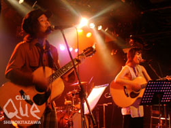 「Special Duet Night」だけにジャンルなんておかまいなしの豪華な面々が勢揃いした今夜、1番手はドーガン兄弟。Duet Nightなのになぜかバンド体制で登場。しかしながら、スペシャルなだけあって全曲ドーガン兄弟のためだけに作られた新曲!! 今夜のために結成されたバンドだけど見納めなんてもったいない。またどこかなで会えることに大いに期待。2番手はAIR PICNIC。松崎と石塚の面白いかけあいはもちろんのこと、曲のセンスも抜群。そして衣装も抜群。一見、おふざけにも見える格好だけど曲の方はお客さんの反応を見れば一目瞭然。これまた今夜だけなんてもったいない!! そして3番手、トリを飾るのはツジマキ。牧野と辻(だからツジマキ)の声が重なると何とも不思議な感覚に。声質がまったく違うのに心地良いハーモニーになるからホントに不思議である。この2人だからこそ出来る空気が会場全体をつつんだ。3組とも「普通に演奏するより緊張する」と口々に言っていたけどむしろ「楽しくて仕方がない」という気持ちが伝わってくるライブだった。ジャンルの違う3組が集まってライブをする、こんなにも楽しい夜が1夜だけで終わってしまうのはもったいない。またいつか第2弾を開催してくれるのを待ち望んでしまう、そんな最高に楽しくてスペシャルな夜だった。"Special Duet Night" AIR PICNIC[石塚貴洋(ex.Gash)&松崎ナオ]/ツジマキ[牧野元(ザ・カスタネッツ)&辻香織] ドーガン兄弟[藤戸じゅにあ(ザ・ジェッジジョンソン)&松本タカヒロ(SPARKY)]