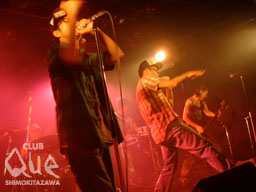 カラーの違う3バンドの顔合わせとなった今夜。まずは、久々のトップバッターで気合十分のダブルオー・テレサ!ベースの弦が切れるハプニングをものともせず、迸る思い溢れる演奏がフロアを引き込んでゆく。特に印象的だったのは、演奏中メンバーが戯れるように入り乱れていた風景。その爆発的なエネルギーに、彼らが今バンドとして非常にいい状態にあるということがひしひしと伝わってきた。2番手はATTACK HAUS!登場するやいなや空気が一転、ダンスフロアと化す。プログラミングが生み出すカオティックなビートと、バンドの持つ強靭なリズムが超合金の如きサウンドをつくり出してゆく。重低音の快感にタテノリで踊り狂うフロア!狂熱のステージはあっという間に過ぎていった。次に登場したのは、サプライズゲスト=猫ひろし!お馴染みのギャグ100連発で客席は笑いの渦に。アンコールの嵐を起こして退場(笑)。そしてトリは本日の主催=SKOOTER!3ピースが生み出す、一音一音がガッシリ噛み合ったサウンド。キャッチーなギターリフが身体に入り込んでくる。ハイライトは何と云っても”natonal holiday”。ヴォコーダーが強烈な踊れるロックチューンに揺れるフロア。ドラムのリズムが更に聴く者を駆り立てる!そのサウンドはフロアに確実に印象を残していった。3バンドの生み出した残響音がいつまでも耳から離れない、そんなアツいイベントだった。"skooter remix vol.19" SKOOTER/ダブルオー・テレサ/ATTACK HAUS