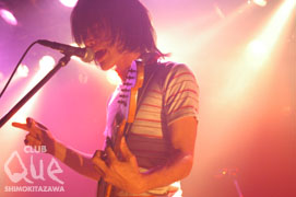 熱い…こんなに熱いバンドだったのか、the blondie plastic wagon! 今まで彼らが持っている熱に気づかずにいた。バンドが持っているものすべてを発揮できる。これだからワンマンは面白いし、見逃せない。"vista" 、"STARDUST LIFE"とスローな曲から始まったバンド結成以来、2度目のワンマンライヴ。こういう曲を頭からさらっと演れるのがブロンディの強みでもあるのだけれど、今日ばかりはこれは序章でしかなかった。3曲目"Plastic form"、続く"O.K"と一気に加速が始まる。「これがブロンディだ!」と全身で表現するように自由に、力強くプレイするメンバー。その気迫といつもより派手めなパフォーマンスに引っ張られるように観客のヴォルテージもぐんぐん上がっていく。"RASPBERRY DANCE"や"Just 1 more kiss!!"で一緒に走っているときも、ミドルテンポの曲にじっと聴き入っているときも。いつでもステージとフロアが自然に一体となって空間を創り上げている感があった。これは「素晴らしいライヴ」以外のなにものでもない。そんな風に気持ちは高揚していくのに、曲を聴いているとふいに泣きだしたくなる瞬間がある。痛さと鋭さ、焦燥感と疾走感。ブロンディが奏でる音楽からは、そういうことを思い出させる匂いがするからだ。真っすぐに前を見すえて唄うVo.篠原信夫の歌は真実味をもって胸に迫ってくる。アンコールでやった"Lounge"で「僕らはこのままさ、変わらずに行くよ」と唄われた言葉はそのままブロンディとその場にいた人全員の行く先を示しているようだった。みんなきっと、このまま前へ走っていく。Driveしようぜ! the blondie plastic wagonに乗って!! "the most wanted ONE MAN GIG ~メリーゴーラウンドはデッドヒートをただ繰り返していたんだ~" the blondie plastic wagon