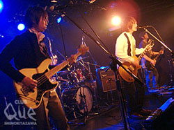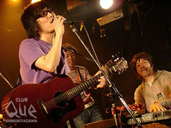 ははの気まぐれ企画の「屋根裏音楽会」も第四回目。豪華なメンツにウキウキしながらQueへ。まずは元ザ・ハッピーズ、JOEYの中村ジョー。渋くてかこいい歌声がかなり魅力的で、思わず聴き入ってしまった。途中ははの気まぐれを交えてのセッションもありと、楽しませてくれた。続いてはNORTHERN BRIGHT。懐かしめの曲「ICECREAM SUMMER」から始まり、新曲までたっぷりと幅広く。NORTHERN BRIGHTはいつ見ても変わらずにスタンダードなサウンドを届けてくれる。キラキラを充電させていただきました。そしてショコラとGreat3片寄さんの、Chocolat&Akito。やっぱりショコラの声はかわいらしく、のほほんとした雰囲気に安らぐ。MCもそんな人柄があらわれているかのようにゆったり。「金沢では7曲しかやらなかったのに2時間ライブしました。」の発言にびっくり。あまりにも雰囲気がいい二人を見ていたら、思わず結婚したくなっちゃった(笑)。そして最後は本日の主役、京都からやってきました、ははの気まぐれ。ボーダーもベルボトムも、その髪型も愛おしい!「あのこをちょうだい!!」と歌っちゃう彼等、気になるよね!懐かしくて、青春の匂いがするような。ちょっとださくて(もちろんいい意味で)、ねじ曲がったかのようだけど、あくまでもポップでカラフル。コーラスワークもビーチボーイズばり。ボーカル松尾さんが曲紹介の度に「名曲」って言ってたけど、それもうなずけちゃう。弾き語り、バンド、セッション、ユニットと、色々な形のライヴが観れたのでお腹いっぱい!思い出すとキュンとしちゃうような、あったかい気持ちを残してくれたイベントだった。"第四回屋根裏音楽会" ははの気まぐれ/Chocolat&Akito/NORTHERN BRIGHT 中村ジョー(ex.ザ・ハッピーズ/JOEY)
