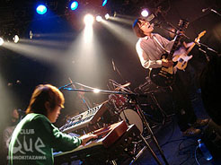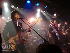毎回個性的なバンドが揃う、フーバーオーバー企画の第七弾。一組目は、残像カフェ。昨年末からレコーデングをしていたため、今回が2006年初ライブとなった。メンバーが変わってまだ新しいけど、ずいぶんとバンド感が増してきた。グッとくる熱さと心躍るグルーブ。あたたかな春の陽だまりのように辺りを包み込む。5人の穏やかな表情が更に気持ちをほっこりさせる。4月に発売されるニューアルバムも楽しみだ。続いては自由人。その佇まいやステージングは凛として、彼らの心意気を感じることができる。存在感のあるあたたかい声はしっかり心に届き、その場がパァっと晴れ渡るような心地よいサウンドが心と身体を揺らす。迫力ある演奏は、押しつけるのではなく、あくまで自分たちのペースで楽しませてくれる。みんなが笑っていられるように、ハッピーエンドを迎えられるように、とそっと背中を押してくれる。そして最後はフーバーオーバー。ボーカルの岩沢さんは、イベント名にのっとって黒の着物姿。突き刺さるような演奏。女の子の淡い気持ちを歌っていてもどこか甘すぎない、ひねくれたポップさ。それらが相まって、一瞬にしてその場をフ―バーオーバー色に変える。「コレクション」の、早口のごとくまくしたてる歌詞にはいつも圧巻。名古屋でのツアーで自ら運転していた車がスピンして死にかけた話など、メンバーの素顔が垣間見れるマイペースなMCが微笑ましい。相変わらずキュート&かっこいいバンドだ。"振り袖空中分解 其ノ七" フーバーオーバー/残像カフェ/自由人