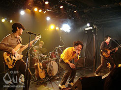 トップは大人な雰囲気のレッサーパンダ。『世界の果て』で本日のロックタイムはスタート!力強いリズム、攻めるギター、ハロー松田の心に響くボーカルが会場を盛り上げる。ハープで始まる『行く先知れずの自転車』の心地よいメロディに会場は温かい空気に包まれた。続いて登場したのはレコ発ツアー中のゴールデンローファーズ。ギラギラ帽子にライト付メガネといういでたちのVo. D.B.の登場に度肝を抜かれる。イントロからとにかくソウルフルで飛ばす飛ばす!コテコテ関西弁&逆切れMCで笑わせ、『メラ!メラ!』でのコール&レスポンスで会場はひとつになり、ダンスフロアに変わっていた。5人が奏でるメロディはミラーボールみたいにキラキラしていて魅力的で、目を離すことができなかった。トリはもちろんパイナップルフリーウェイ。客電が落ちると同時に黄色い声が上がる。Vo.シンが登場して「オーイェー!じゃねえよ!オーノー!!」と煽ると、2曲目『VSGG』で早くも会場は最高潮!『インスロ』はハープで歌い、『ブラザーブラザー』でしっとり聴かせた後は、メンバー全員の飾り気ない真っ直ぐなロックに、会場は踊りまくって応える。8曲はあっという間で拍手は鳴り止まない。「今日は愛が足りなかった」とアンコールはラブソング『泣くな女』。そんなことない!彼らの自主企画“パイナップルゴーゴーvol.9”はパイフリらしく熱すぎるくらいに愛でいっぱいのライブだった。"パイナップルゴーゴー vol.9" パイナップルフリーウェイ/ゴールデンローファーズ/レッサーパンダ DJ>KAWATO
