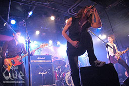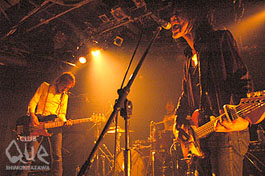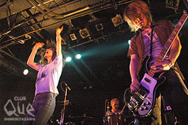 THE SALINGER企画の今日のイベント。開演前から超満員の今夜のQueの1番手はBUGY CRAXONE。1曲目”New Sunrise”からラストの”I scream”までMCも殆ど挟まず一気に駆け抜けた、BUGY CRAXONEらしい迫り来る轟音の疾走感に満ち溢れた爽快なステージだった。次は、今日で活動休止となるthe blondie plastic wagon。”raspberry dance”以降完全に沸点に達し、ギターがロックしてリズム隊がロールする、そんなR’n’Rの快感が溢れていた。「思い立ったらまたやろうと思ってます」そう云ってthe blondie plastic wagonは去っていった。3番手は1曲目”white light”からフロアの色を塗り替えたdetroit7!”Raise High”や”GRACIAS”では音と踊る愉しさを最大限に味わえるdetroit7のロックの醍醐味に酔い痴れた。最後は今日の主宰=THE SALINGER。ステージの合間のDJやLONSDALEとのコラボなど、このイベントをがっちり作り上げてきた彼らは、何と8年2ヶ月ぶりのQue出演!1~3曲目は新曲が披露され、耳を劈く爆音が躰を浸食してゆくTHE SALINGERの音がQue中に響き渡った。NIRVANAのカヴァー”Lithium”演奏前のMCでは、トリビュート盤についての嬉しいニュースも報告された。ロックをこよなく愛する彼らにこそ出来るイベントだ――そう思った。"Beautiful Rock Night" THE SALINGER/detroit7/the blondie plastic wagon/BUGY CRAXONE