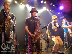 ドイツはミュンヘンより来日したbeNUTSの日本ツアーのファイナルが、ここ下北沢CLUB Queで行われた。ドイツではジャガイモ同様、良いスカバンドが生まれる土壌に適していると言えよう。バンド数も多く、ドイツ系のサウンドを目指している日本のバンドも少なくない。その中でも5本の指に入ろうかとの勢いのbeNUTSの来日である。1番手はThe eskargot miles、気持ちの良いヴォーカルがその場を和ませる。2番手はTHE JAPONICANS、男女ツインヴォーカルが楽しい雰囲気を醸し出す。3番手はDALLAX、パワフルなヴォイスとブ厚いホーンが一体となっている。主役のbeNUTSの登場、ファイナルということもあって気合十分。地元の乾杯の歌を披露し、一曲目は1stアルバムから“EVERYBODY SKA”で幸先の良いスタート。その後も、ヒット曲や最新ミニアルバム『A FISTFUL OF OFFBEAT』からの選曲でフロアを沸かした。「ルードボーイの歌が聞こえてくるよ~♪」と“蛙のうた”の替歌も披露し、終始楽しませてくれた彼等にリスペクト!! "2TONE TIME before" beNUTS/DALLAX/THE JAPONICANS/The eskargot miles DJ>JUN(RCF)/SATOSHIN'(RCF)
